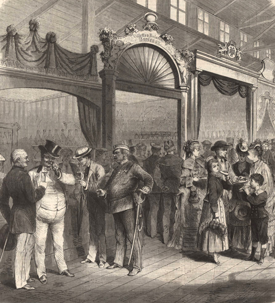 Die Karikatur „Der Kosthallenjuror“ spielt auf die während der Weltausstellung tätige Expertenjury an. Tatsächlich musste allein die Jury-Abteilung für Nahrungsmittel beispielsweise 30.000 Flaschen Wein prüfen.